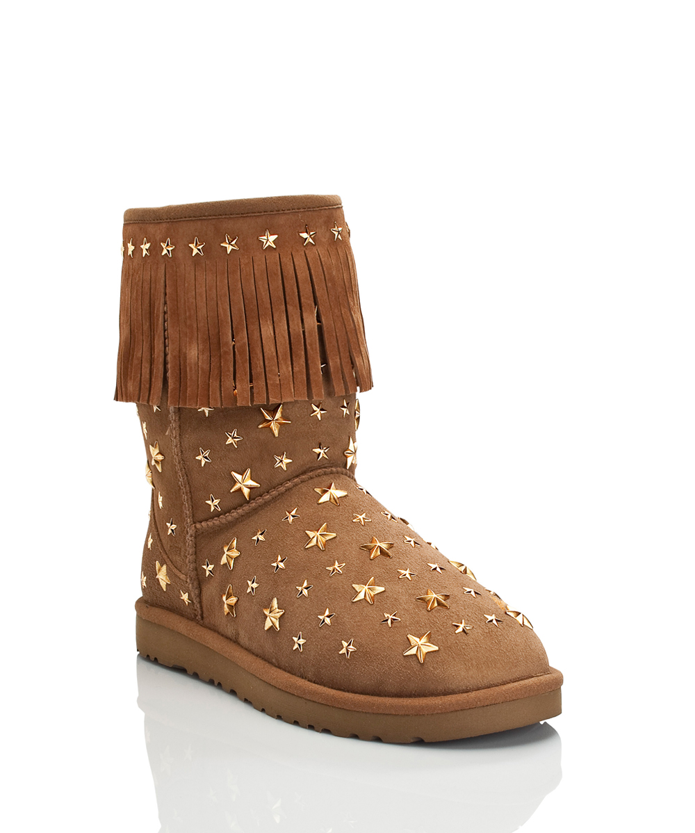 Talk about a collaboration! Jimmy Choo has teamed up with the oh so cozy brand of UGG to bring us something new and haute this season. Not too far gone from the traditional look of the world’s most popular boot…but Jimmy Choo has added just enough flair, that I’m sure will have these boots flying off the shelves. Of course they come with a hefty price tag! Hello?! You did hear me say JIMMY CHOO right? This is seriously some luxurious comfort…Sheesh!