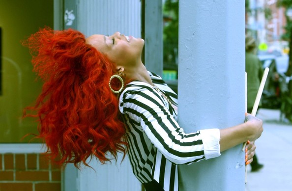I haven’t had red hair in 11 years… yes I am only 25 years old, but my mom let me do whatever I wanted(hehe!) But I don’t know if I’m brave enough to do it again. Rihanna has always been one of my favorite go-to girls for hair styles. So on that note, I guess I’ll just live vicariously through Rih-Rih’s RED locks 🙂