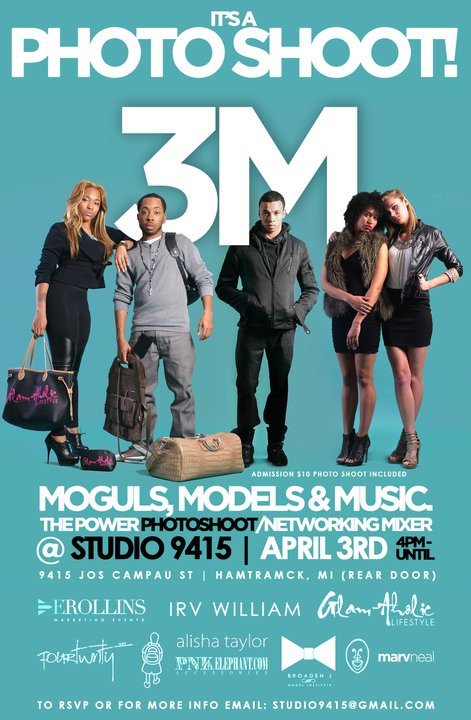 Attention all Moguls, Models, Musicians & everyone else!! If you are in the Metro Detroit area, please join me at the 3M Photo Shoot & Industry Mixer! This is an event you will not want to miss….you’ll thank me later!